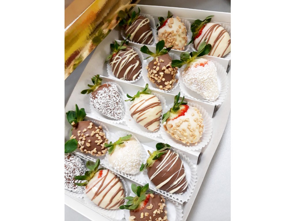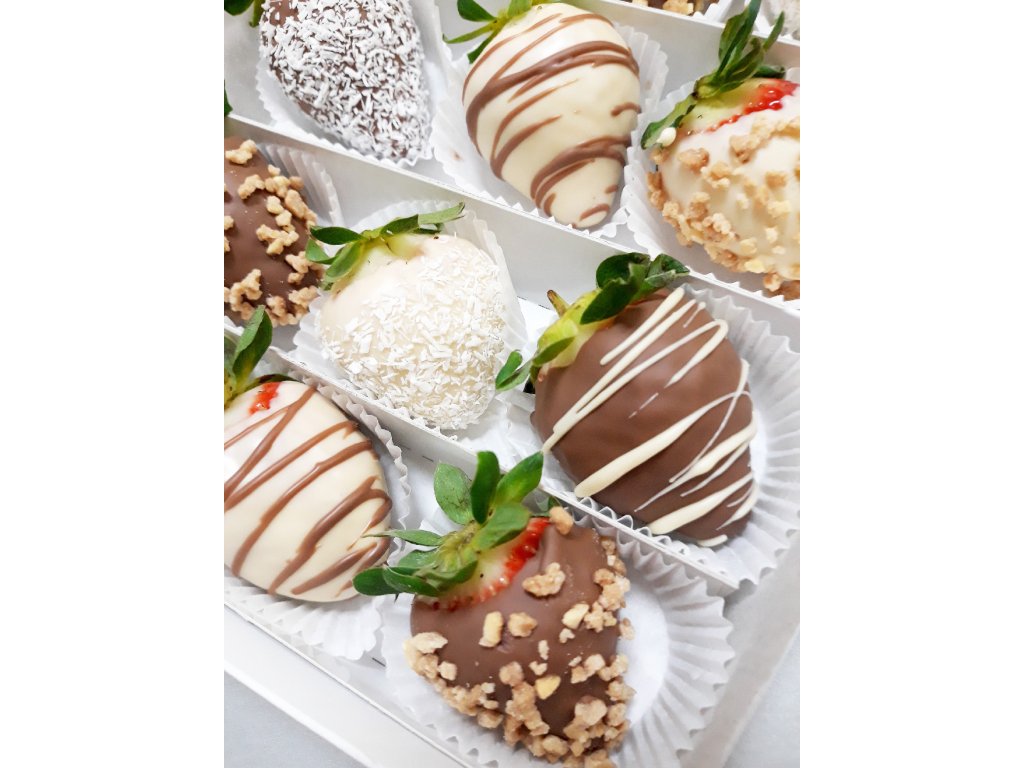 Jahodová lady Duo - ako to už názov predpovedá, vám prináša zážitok z dvoch druhov belgických čokolád. Sami si vyberáte ktoré dve čokolády najviac preferujete, a tie sú v tejto unikátnej jahodovej bonboniére skombinované. Samozrejme, každá jahôdka je iná vďaka posýpkam - karamelizovaným orieškom alebo kokose, či zdobením kontrastnou čokoládou. Bonboniéra tak pôsobí pestro a zaujímavo, ako chuťovo tak i svojím vzhľadom.