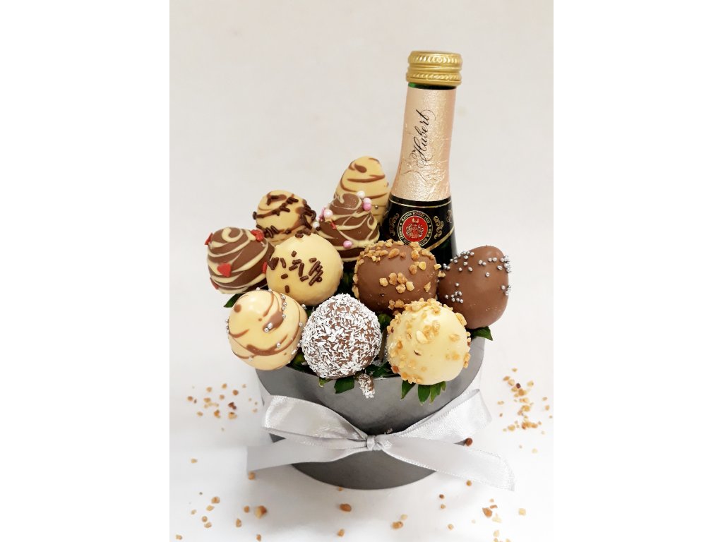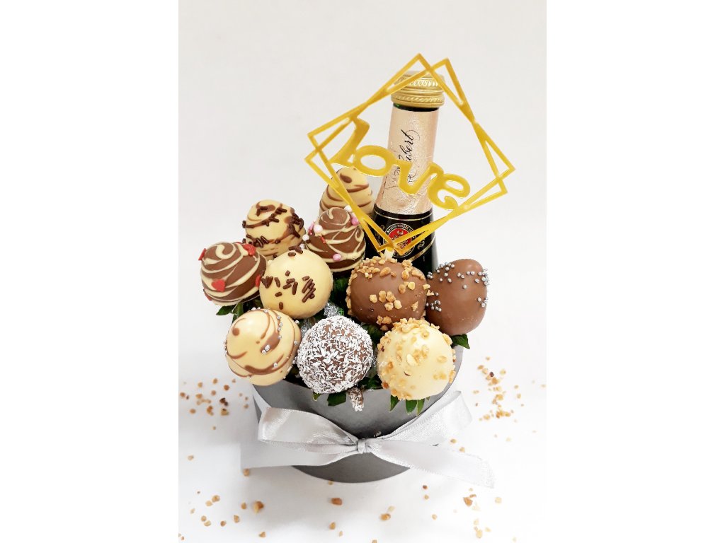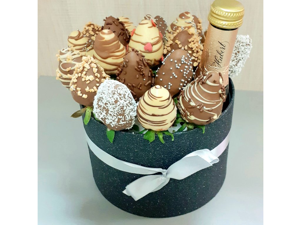Hľadáte originálny darček pre pánov ? K sviatku, výročiu alebo na Valentína ? Spojenie sladkej chuti jahôd v belgickej čokoláde mliečnej i bielej, k tomu chuť polosladkého šampanského Hubert - to je zaujímavá a chuťovo výnimočná kombinácia, ktorú nájdete v našom Pánskom boxe. Mix oboch čokolád- mliečnej i bielej je doplnený chutnými posýpkami, ako karamelizovanými orieškami, kokosom, cukrovými perličkami, srdiečkami, čokoládovou ryžou...i ozdobným dekorovaním jahôd kontrastnou čokoládou.